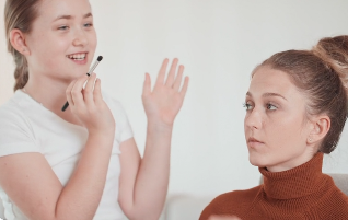 Young trying makeup apply