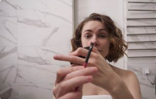 Eye makeup in bathroom